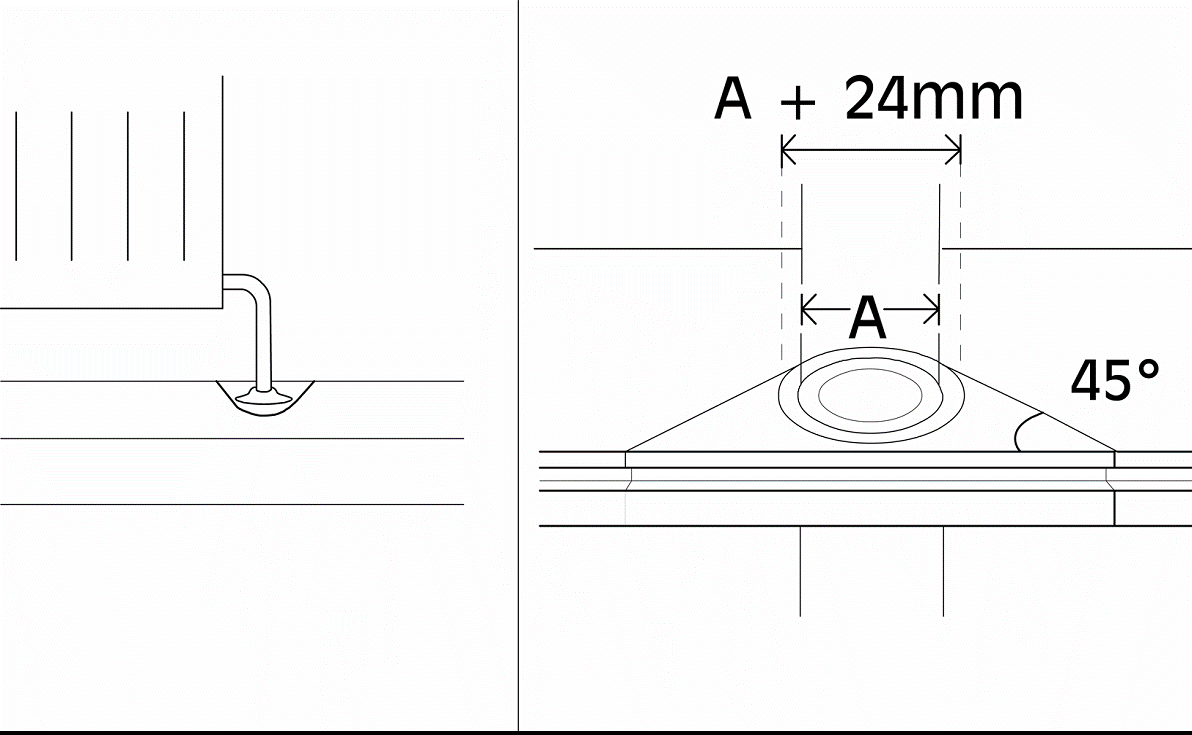 Distance to walls and fixed points: 2 mm per metre of the floor width on each side, however always min. 12 mm (1/2") (UK 15 mm).